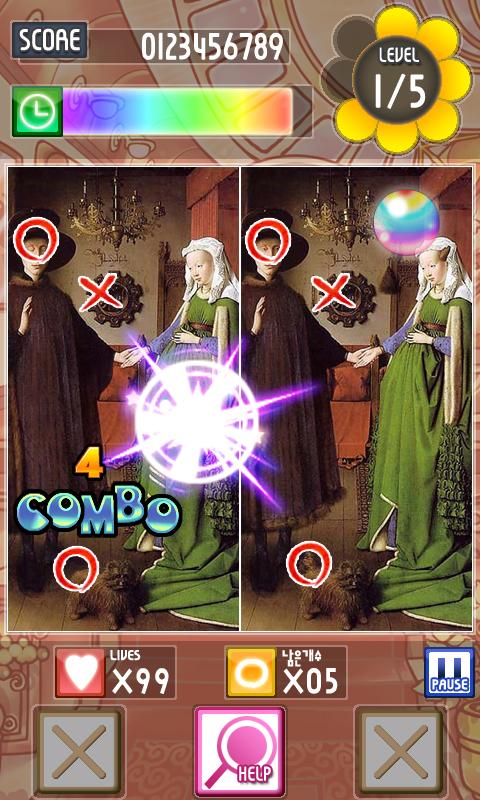 보고만 있어도 흐뭇한 명화를 꼼꼼하게 보면서 두 장의 다른 부분을 찾아내는 게임입니다.