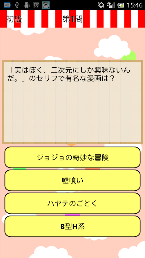 This version of まんがセリフクイズ~懐かしいアニメや最近のものまで~ Android Game comes with one universal variant which will work on all the Android devices.