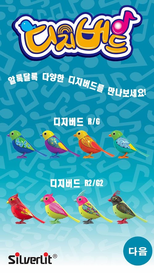 디지버드는 우리들의 귀여운 아기새 친구에요! 진짜 새처럼 부리와 고개를 움직이고 지저귀며 노래해요. 바람을 불거나 휘파람 반지를 불면 디지버드는 노래하고 ‘디지버드 앱’으로 히든송을 무료로 얻을 수 있어요! 알록달록 다양한 무늬를 가진 디지버드를 모두 모아 나만의 ‘디지버드 합창단’을 만들어보세요!'re New Dizzy Bird looks? So, just to open the hidden itdapnida with four kinds of digital bird song app! If you want more songs, I can open all the hidden song mini-games hidden in the app's 10. Of course, the primary 20 of the digital bird can sing with anywhere, anytime itdapnida app!