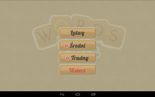 Każde odgadnięte słowo, to dodatkowy czas. Każde odgadnięte słowo, to punkty. Zdobądź jak najwięcej punktów (i słów) aby odblokować kolejne poziomy. Na początku odblokowany jest tylko Łatwy poziom.