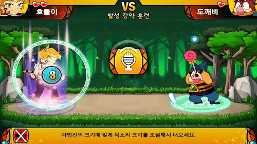- 화면 상단의 하트는 캐릭터의 체력을 의미합니다. 도깨비나 플레이어 캐릭터의 체력이 다할 때까지 학습이 반복됩니다.