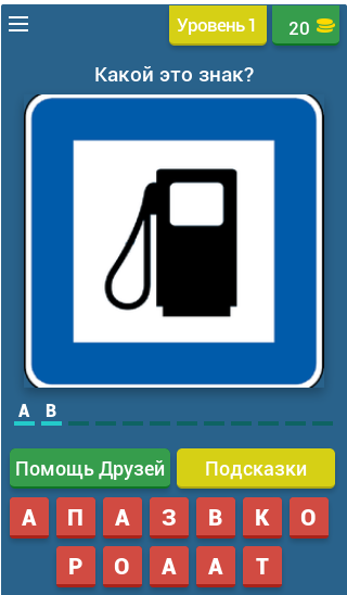 The rules in the game are extremely simple: you will have to guess the road sign by the picture, answering with its full name. In some levels you have to insert the missing word, thus complement the name! You can get absolutely any traffic sign, such as: warning signs, priority signs, prohibited signs, prescriptive signs, special prescription signs, information signs, service signs, additional information signs (signs). You have to make a word of the available letters, thereby guessing the sign!
