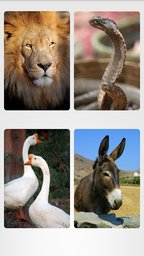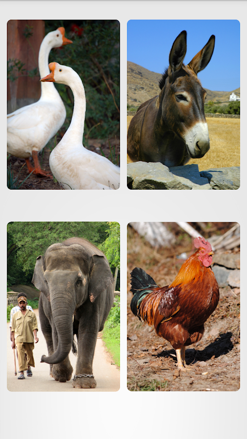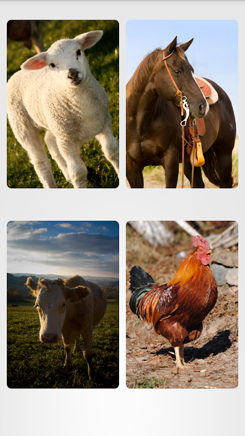 The application is absolutely free of charge available 2 modes - teaching (shows a picture of the animal and its sound sounds) and games (you must choose an animal for sounding the sound)