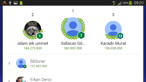- Online sıralamalar (En İyiler, En Zenginler)