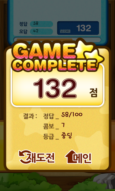 4. 제한시간 1분내에 문제를 푸시면 자신의 점수와 등급이 나옵니다.