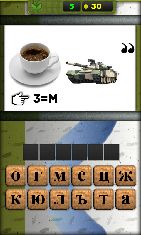 Проведи время с пользой разгадывая не сложные ребусы. Эта игра отлично подойдет для детей и взрослых. Поможет развить логику и абстрактное мышление. Перед вами ряд картинок, порой совсем непонятных но каждая из них несет логический смысл и содержит часть слова которое необходимо отгадать. Если у вас мало опыта в разгадывании ребусов, в игре есть подробная инструкция как это делать а так же можете использовать подсказки.Spend time with benefits not solving complex puzzles. This game is perfect for children and adults. It will help develop logic and abstract thinking. Here is a series of pictures, sometimes quite obscure but each of them is logical sense and contains part of the word that you want to guess. If you have little experience in solving puzzles, the game has detailed instructions on how to do it as well as you can use the tips.