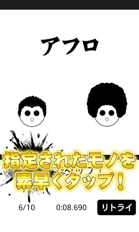 お題で出されたアフロとパンチパーマを軽快に選んでタップ。