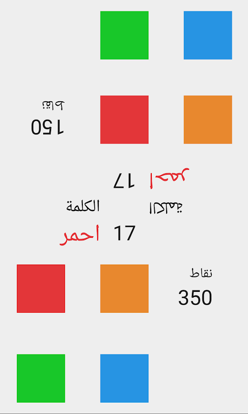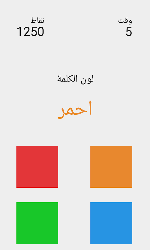 تعرض اللعبة عليك سؤال " لون النص" و تظهر على الشاشة جملة مكونة من كلمة احمر و لكن الجملة بلون ازرق ! و المطلوب ان تختار اللون المشابة للون النص و هو الازرق.