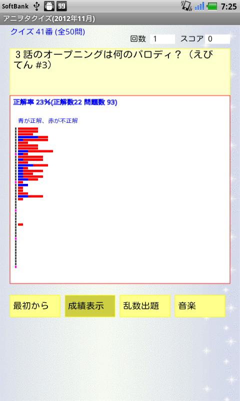 クイズの成績をファイルに保存でき、各設問の正解状況を表示することもできます!