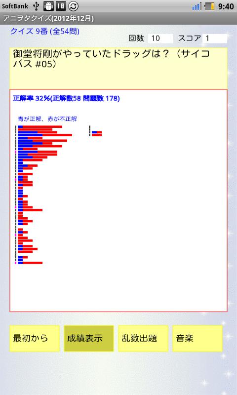 クイズの成績をファイルに保存でき、各設問の正解状況を表示することもできます!