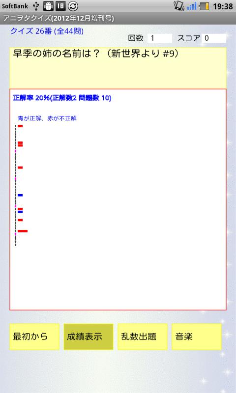 クイズの成績をファイルに保存でき、各設問の正解状況を表示することもできます!