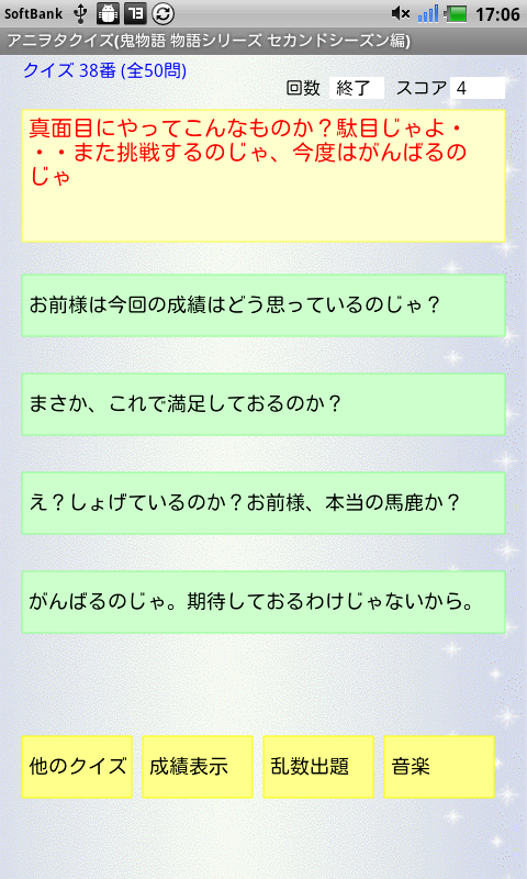 また、物語シリーズ セカンドシーズンの特選問題150問を集めた特選!アニヲタクイズ(物語シリーズ セカンドシーズン編)も用意しています。Anime Otaku quiz is "demon story" ed.