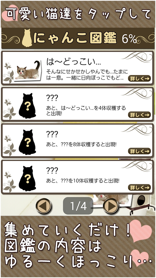 操作は簡単★可愛い猫達をタップして集めていくだけ