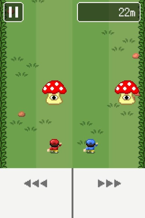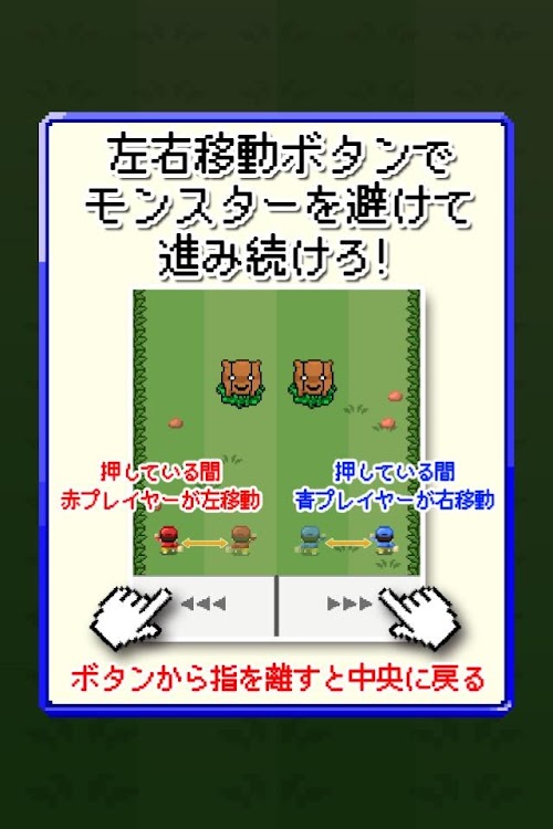 右ボタンを押している間、右の青プレイヤーが右に移動します。