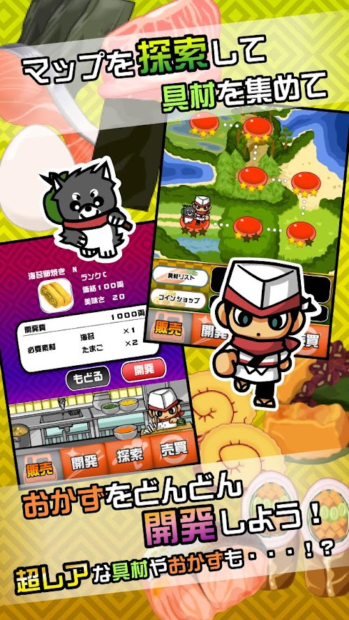 探索で一度獲得した具材はコインで売買できるようになるぞ!