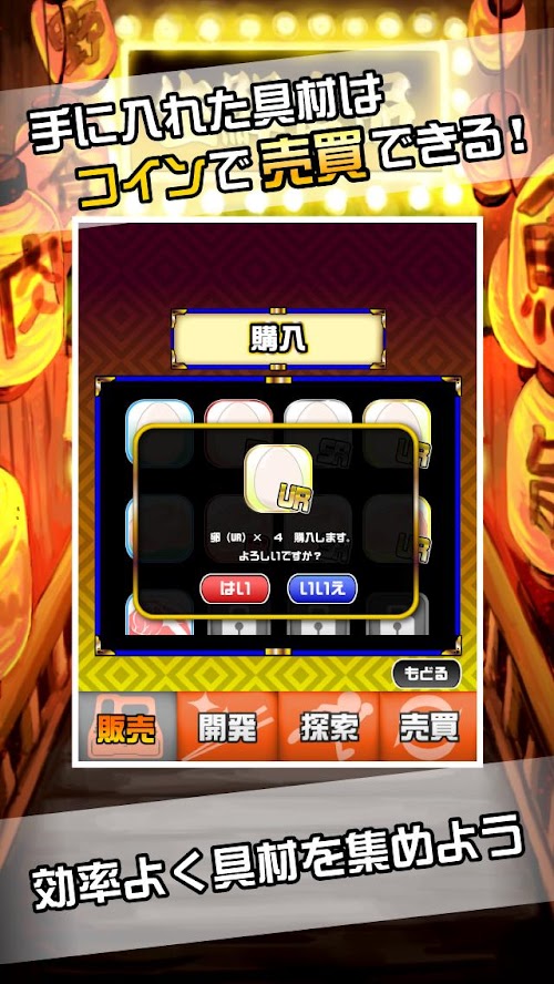 具材を売ってコインを手に入れ、なかなか手に入らない具材を買ったりしよう!