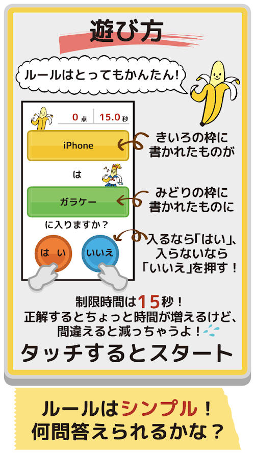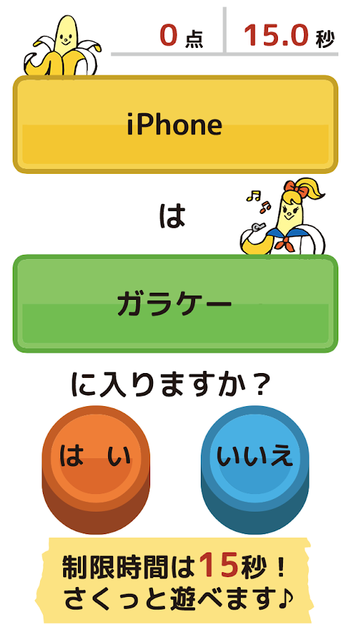 入るかどうかを「はい」と「いいえ」の二択で答えるクイズです。