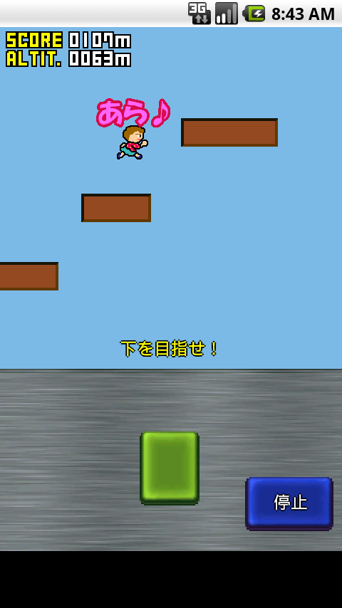 While aunt moves up and down (while changing the altitude) is a one-key game to jump so as not to fall.