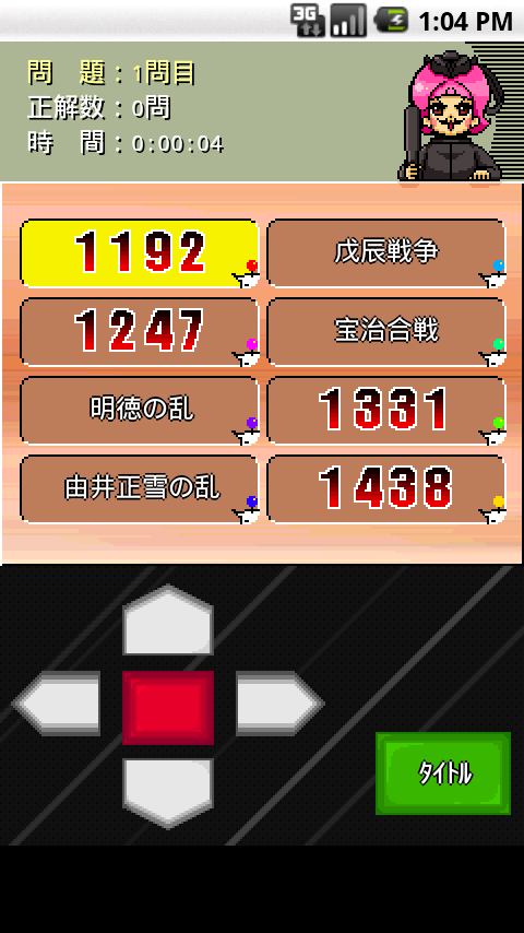 歴史上の事件と年号の合うものを見つけるゲームです。