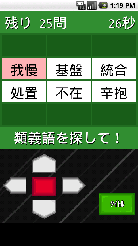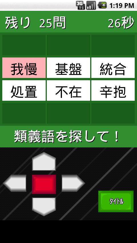 漢字2文字の同義語、対義語、同じ読み方を探す脳トレゲームです。