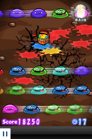・宝箱がスライムによって画面外へ運ばれてしまうとゲームオーバーです。