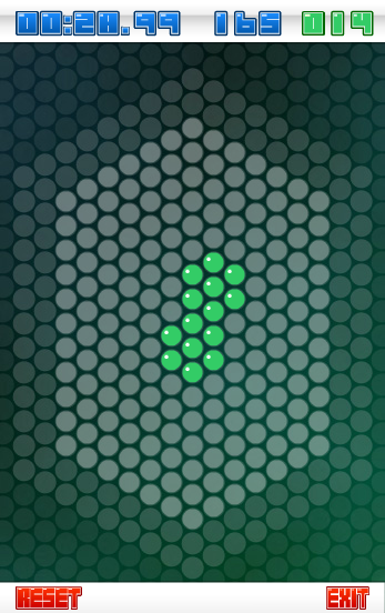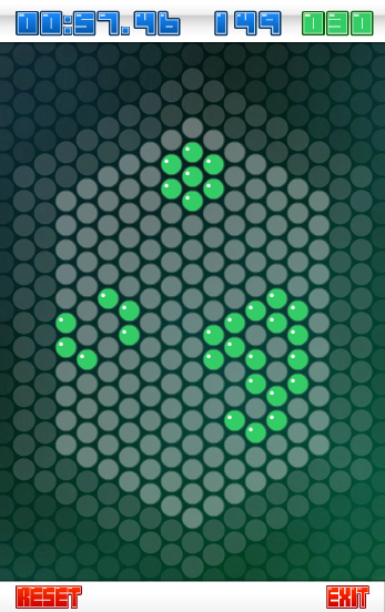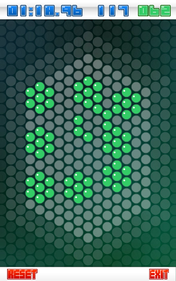 2. ボールをタップすると、そのボールと周辺のボールが逆の色(緑→グレー、グレー→緑)に変わります。