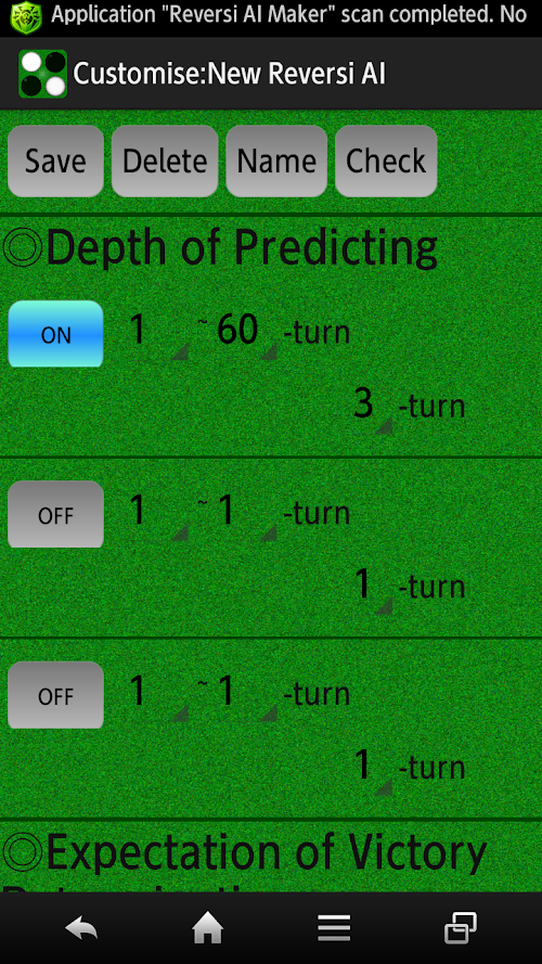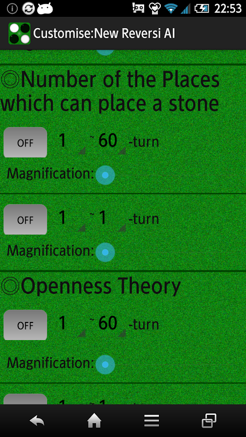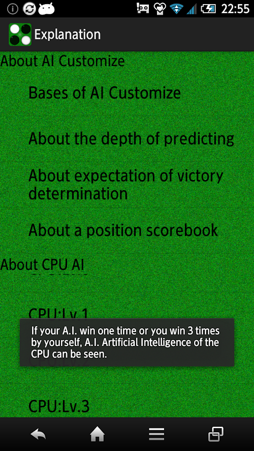 Reversi A.I. Maker is a new Reversi (othello) game which can also make a partner's A.I. Artificial Intelligence by itself.