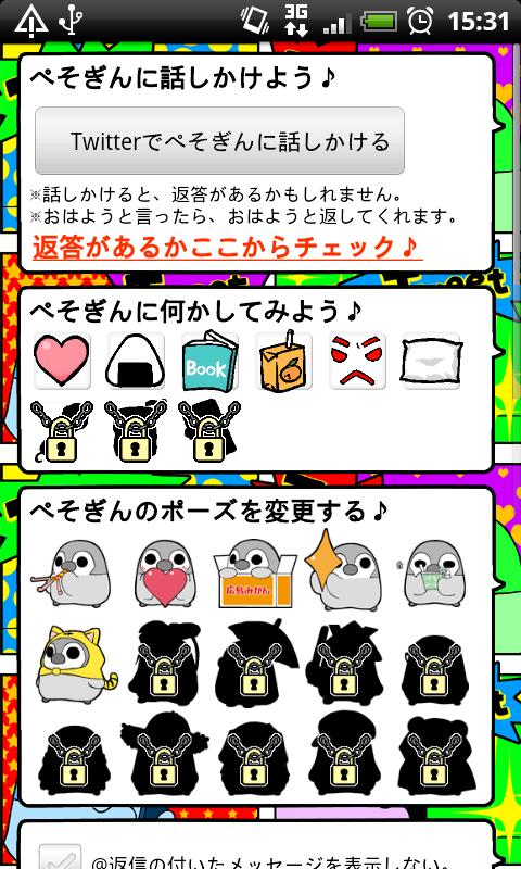 From the Home screen, "Pesogin" It could carefree muttered Mamo. Because it has to reflect the "Pesogin" official bot present on Twitter. The contents of the murmur is a widget that is to be displayed on the home screen. (Are those that reflect the murmur on Twitter, it does not necessarily guarantee the display of the murmur of a certain amount.)