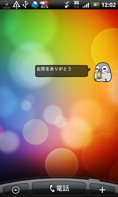 (C)ざんみょ/ARTSPLANET It is the full version (paid version). It is a widget that put character to "Pesogin" on the home screen. Like "Pesogin" will be like if they live in the home screen. By the action of the Pesogin, you come Pesogin is spoken in words.
