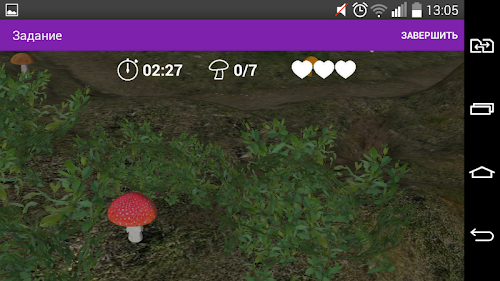 3. Target. Specifies the level of knowledge of the child on "edible / inedible mushrooms" in the format of the game. The player's task - to collect all the edible mushrooms as soon as possible, having made the minimum number of errors. In the course of the game participant receives points. It is recommended to arrange the ratings / competitions in the company of friends, class or school.