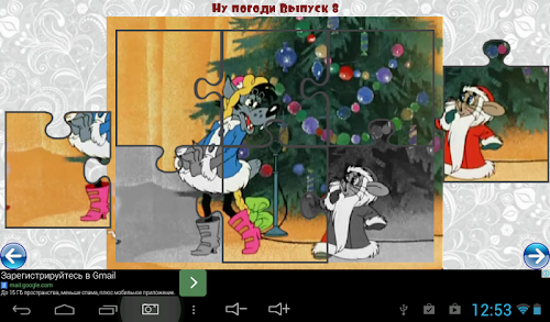 Собирая пазлы с кадрами из лучших советских мультфильмов ребенок получает в качестве подарка песенку из мультфильма.