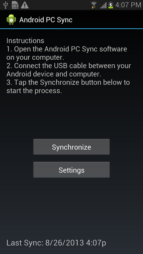 2. Click Synchronize in the Android PC Sync application on your PC.