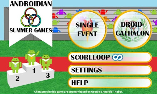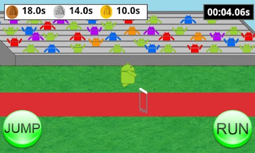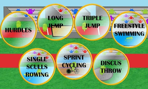 Androidian Summer Games lets you experience the Hurdles, Long Jump, Triple Jump, Freestyle Swimming, and Single Sculls Rowing. Earn a Gold, Silver, or Bronze medal in each event. Compete in all the events in a row and earn a medal for your combined performance in the Droidcathlon!