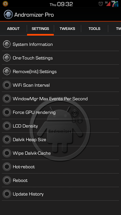 Andromizer is a universal tools that can be used easily and safely. Can be use the settings, tweaks and tools on Android devices.