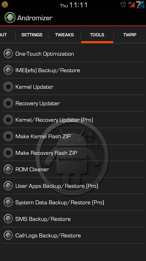 Andromizer is a universal tools that can be used easily and safely. Can be use the settings, tweaks and tools on Android devices.