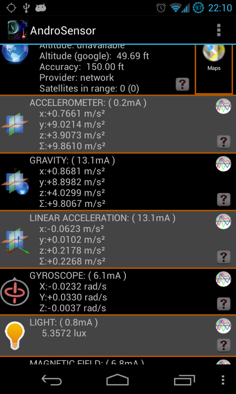 * For more information, please visit AndroSensor's website. Also, please be encouraged to email me at [email protected] to report a bug, suggest an improvement or just ask a question about the app.