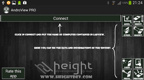 The sensorial power of Android devices is quite striking to many programmers platform, which makes the devices are strong tools aligned with other development tools that may use the data generated by these sensors for other purposes outside of the apparatus. The LabView software allows various software development by creating a kind of flow chart where the programmer develops the whole logic of its new software through logic blocks.