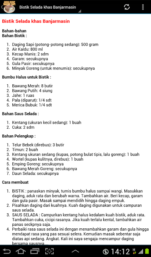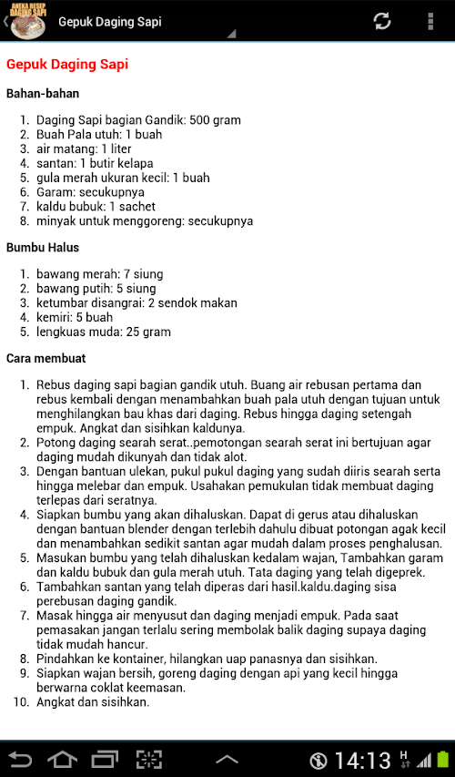 If you are looking to download other versions of Aneka Resep Daging Sapi Android App, We have 1 version in our database. Please select one of them below to download.