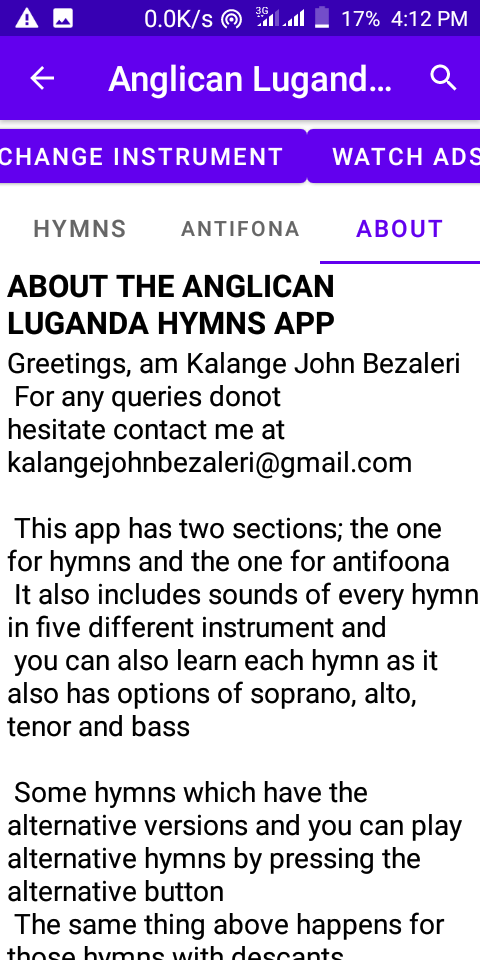 Anglican Luganda Hymns have 3 instruments for each of the 412 Anglican Hymns
