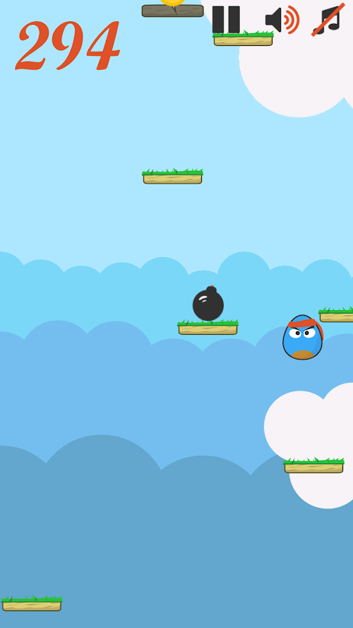 Jump, Jump and Jump as high as you can. If you're lucky you might also get one or two rocket rides, or a super trampoline jump! Whatever you do, avoid touching the black bombs, they're lethal.