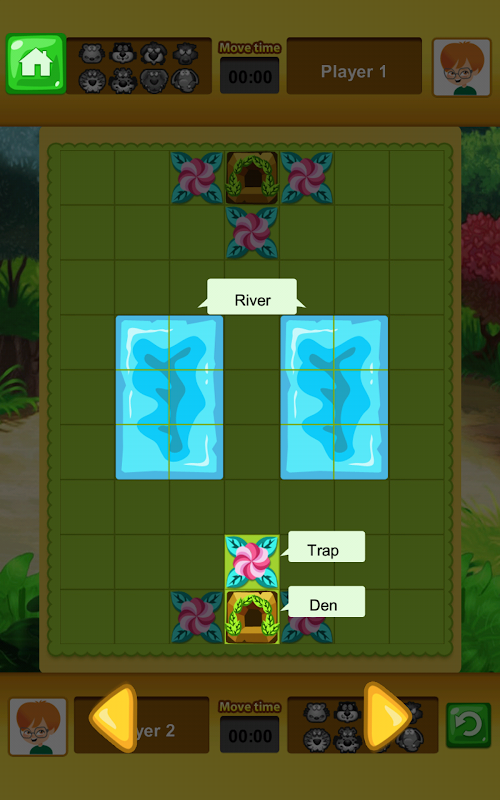 The Rules and Movements of this game are simple. The main objective is either to move a piece onto a special square, the den, on the opponent's side of the board, or capture all of the opponent's pieces.