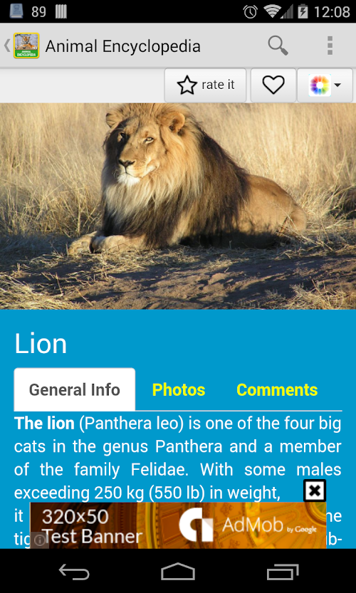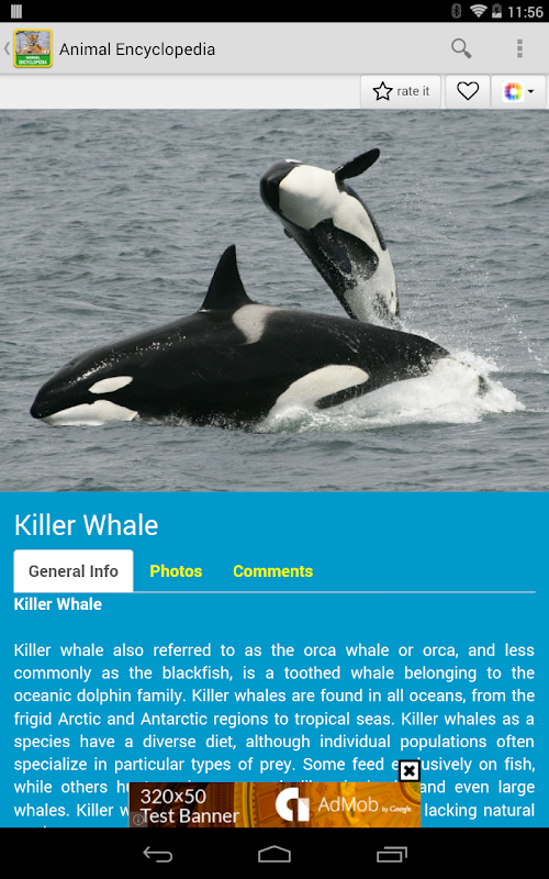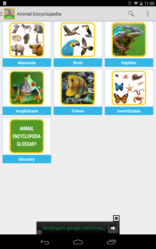 Animal Encyclopedia is a comprehensive guide (app) to the exciting world of animals. Here you can learn all about animals. The Animal Encyclopedia (app) is organized by taxonomy - mammals, birds, reptiles, amphibians, fishes, and invertebrates, further sub divided into families (Apes, Elephants, Whales Etc.). Each individual animal entry gives you a fascinating photograph and details as much interesting information as possible on their habitat, geographic location, size, lifespan, and conservation status. Each entry also contains the common names and scientific names.