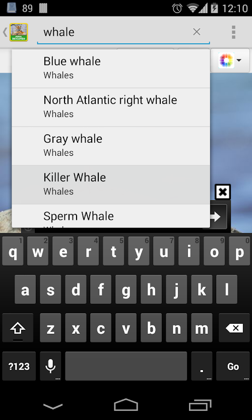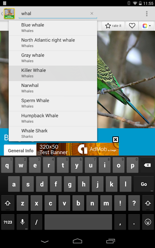 The app has a nice search feature to search by either the common name or the scientific name of the animal.