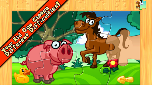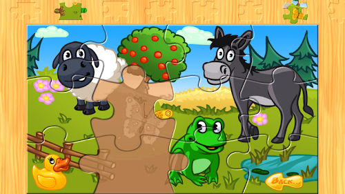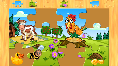+ 15 puzzles - your kid learns about the different farm animals such as horse, cat, dog, cow, sheep, pig, rabbit, duck, frog and more.