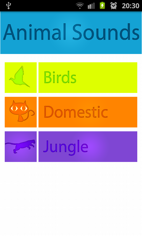 More than 200 sounds in 3 category! (domestic, jungle, birds)