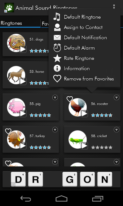 Welcome to the Android Virtual Zoo and Wild Animal Park Soundboard and Ringtones App. This fun app includes 45 unique and fun animal pictures and their sounds. You can set these sounds as Ringtones, Notifications or Alarms. Educational Animal sounds for kids all ages on your Android phone. Press and hold on icon to set as ringtone, alarm or notification!