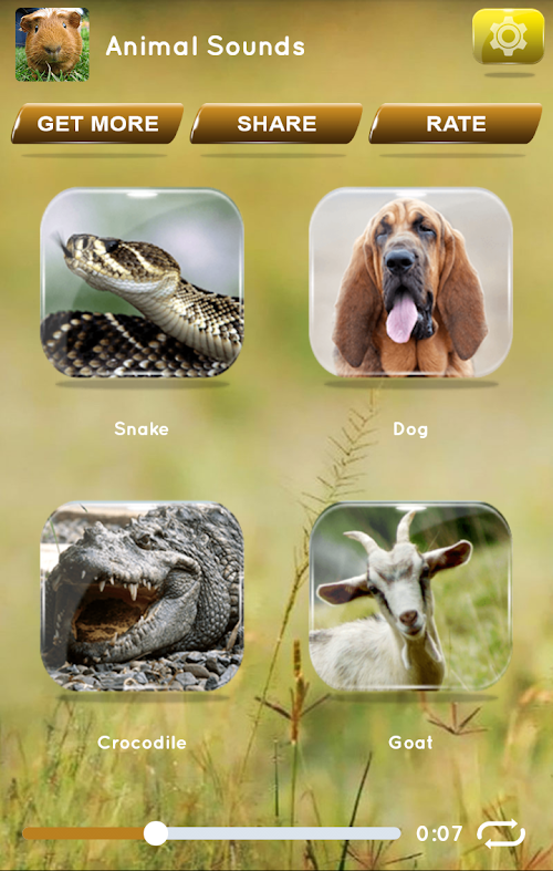 Animals Sounds brings you the finest selection of high quality natural sounds of animals! From cute and cuddly sounds to the frightening roars and howls, Animal Sounds will show you with the magic of unspoiled nature inhabited by various wild animal species that make the most fascinating noises, but also the sounds produced by adorable domestic animals that your children love! Enjoy funny animal sounds, terrifying animal sounds and other unbelievable noises. These amusing animal ringtones are new on the market and available for free download, so get them right now and enjoy the marvelous world of nature and its sounds!