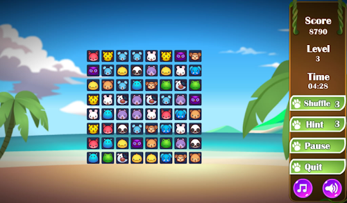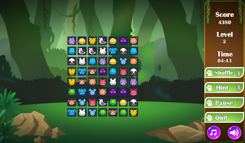 Mahjong connect game with funny animals. Connect 2 of the same animals with a path with no more then two 90 degree angles. Remove all animals to advance to the next level. Make a chain of combinations to earn more bonus points.