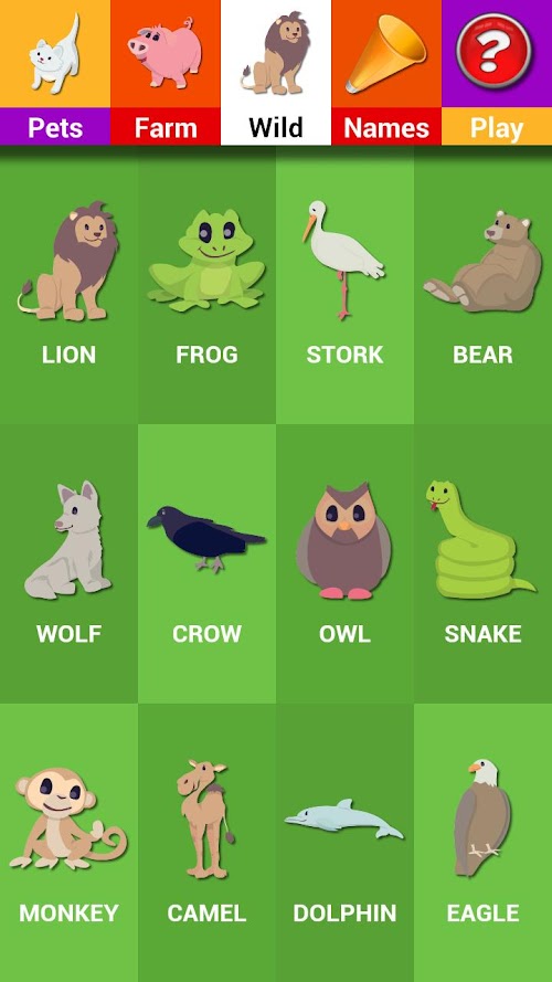 Animal names is especially fun for kids who can discover sounds of animals and play at the same time.