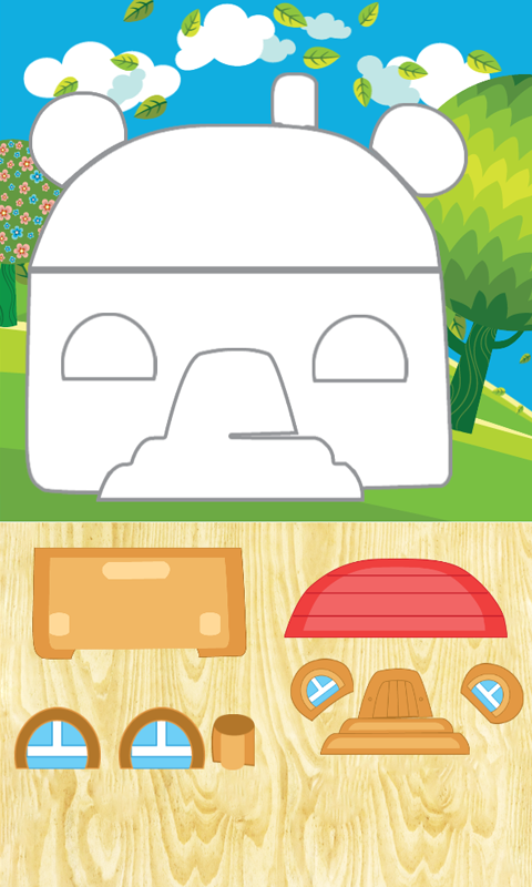 Cognitive game for children " Animated house animals puzzles ." Offers nine fun levels , each house is one of the animal is a dog , horse , mouse , pig , rabbit , rooster , bull, bear and cat. All they need to collect eight parts is the roof , doors, windows , pipe but this game does not end with each cabin who collected your child can play as well as animals which appeared along with the house.
